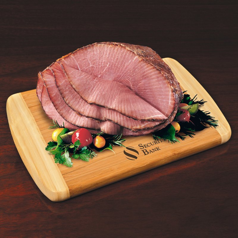 Spiral-Sliced Half Ham with Logo Bamboo Cutting Board